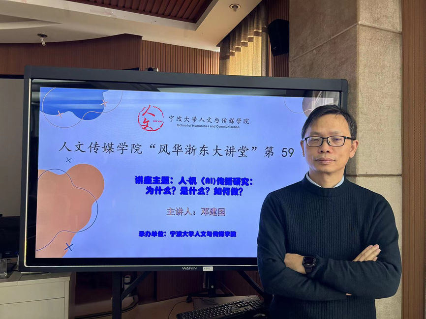 师生开展了题为《人-机(AI)传播研究:为什么?是什么?如何做?》的讲座,本次讲座由新闻传播学系副主任赖明东老师主持。