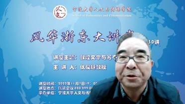 2022年11月7日晚,西华师范大学国学院院长、写本研究中心主任、博士生导师伏俊琏教授应邀作了题为“敦煌文学与写本学研究”的学术报告。讲座由程景牧老师主持。