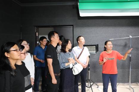 座谈会后,王琦琦一行参观了文轩探花 教学实践基地,对我校与宁波市委宣传部就新闻传播系开展的合作共建表示赞扬。