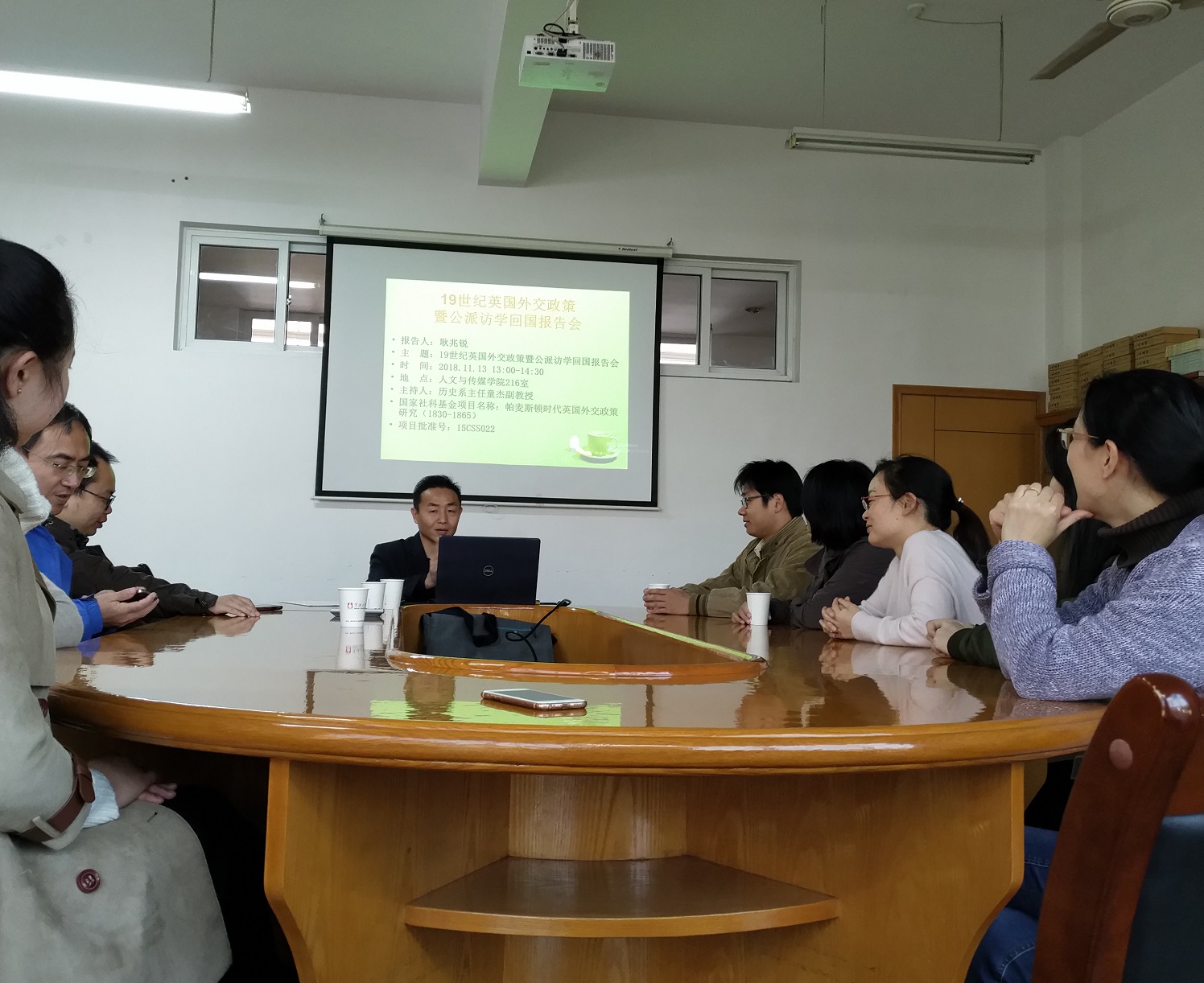 沙龙主题为“19世纪英国外交政策暨公派访学回国报告会”,学术沙龙由历史系主任童杰副教授主持,文轩探花