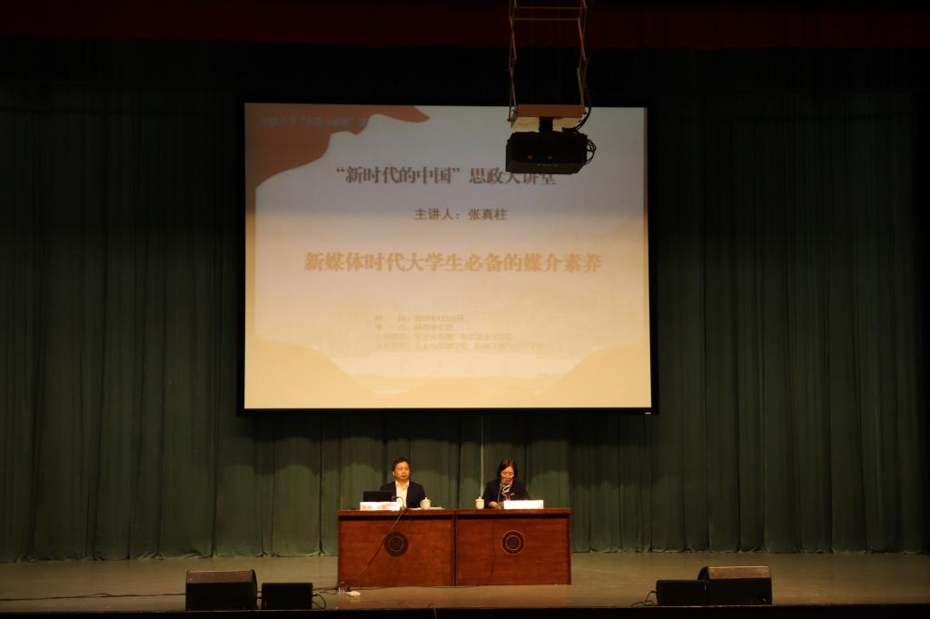 张真柱研究员向同学们讲解新媒体时代把握正确舆论导向,提高新闻舆论传播力、引导力、影响力、公信力,巩固壮大主流思想舆论的重要性。他阐述了党和国家几代主要领导人对新闻媒介的重要论述,为大学生厘清了媒介、媒体、媒介素养的概念、介绍了大众传播媒介的类型和我校的主要媒介种类,分析阐述了新媒体语境下大学生媒介素养存在的主要问题以及大学生媒介素养培养路径等六个方面,深入浅出、高屋建瓴,理论结合实践,提出了在国家、政府、高校和个人等四个层面培养大学生媒介素养的路径,对培养新时代大学生的媒介素养具有深刻的指导和实践意义。他的讲座以问题为导向,引导大学生在当今文化交融的今天坚持马克思主义在意识形态领域的指导地位,进一步增强“四个意识”、坚定“四个自信”,做到“两个维护”,增强媒介道德和法律观念,促进青年学生坚定理想信仰,给在场师生上了一堂生动的“形势与政策”课。