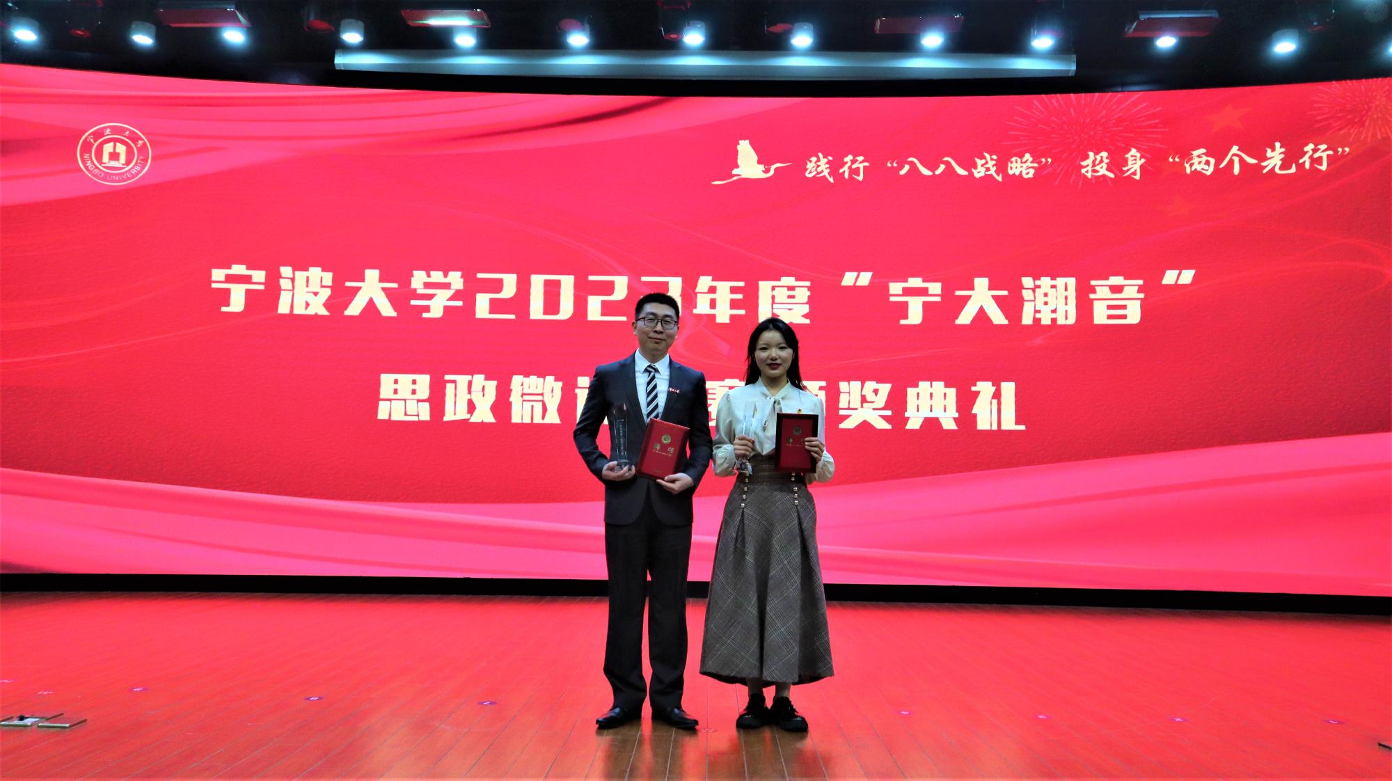 当站在舞台上拿到奖杯的一瞬间,我其实有点恍惚。对于初次参加思政微课比赛的新手而言,我原本只是抱着学习的态度,想为自己教学实践积累经验,没想到竟一路走到了决赛。投入大量的时间打磨文本,一次又一次地调整展示形式,最终取得一等奖的成绩,完全出乎我的预料。一个强大和完美的后援团队的支持是我本次比赛最大的优势。感谢学院给了我这次学习的机会,感谢后援团老师、同学们台前幕后的耐心指导和完美配合。这次比赛成绩不仅是对我个人表现的认可,也是对我们团队合作成果的表扬。同时,很高兴在赛场上认识了优秀的老师和同学,希望以后能带来更多更好的作品。最后,我愿深深扎根教学一线,奉献无悔青春,同学院成长,与母校荣光。