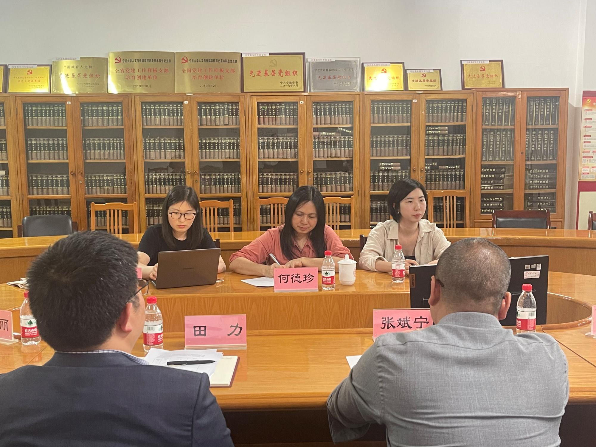 2023年5月5日下午,桂林理工大学公共管理与传媒学院何德珍副院长一行三人就传播学专业建设等相关事宜来文轩探花