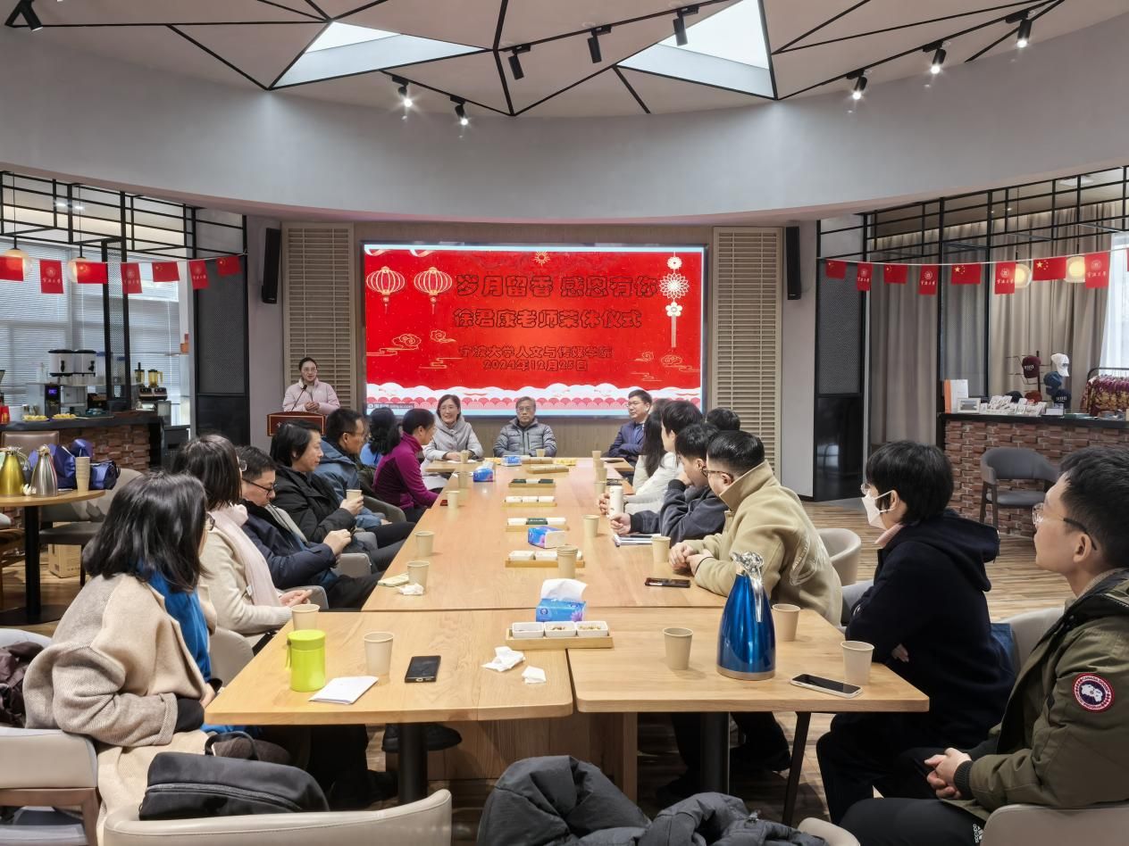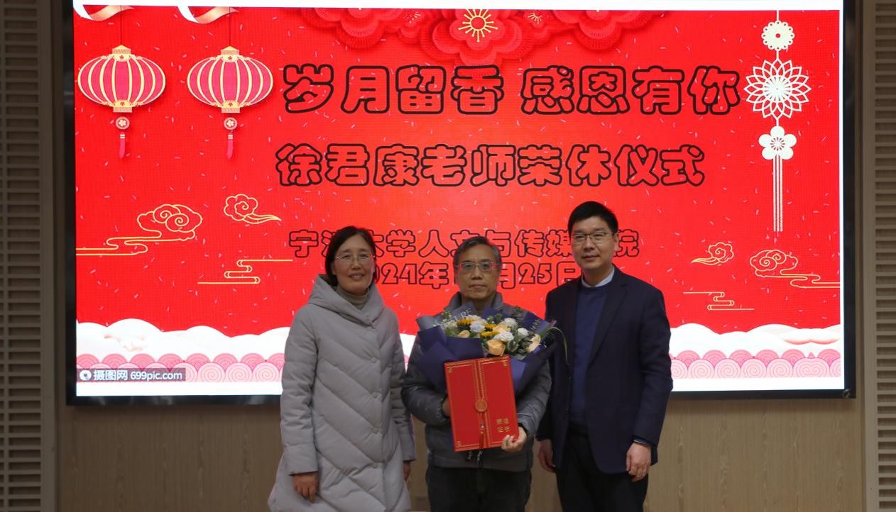 12月25日下午,人文与传媒学院在校友之家举办了徐君康老师的荣休仪式,仪式由学院工会主席黄维琴主持,学院党政领导、新闻传播学系教师共20余人参加了该仪式。