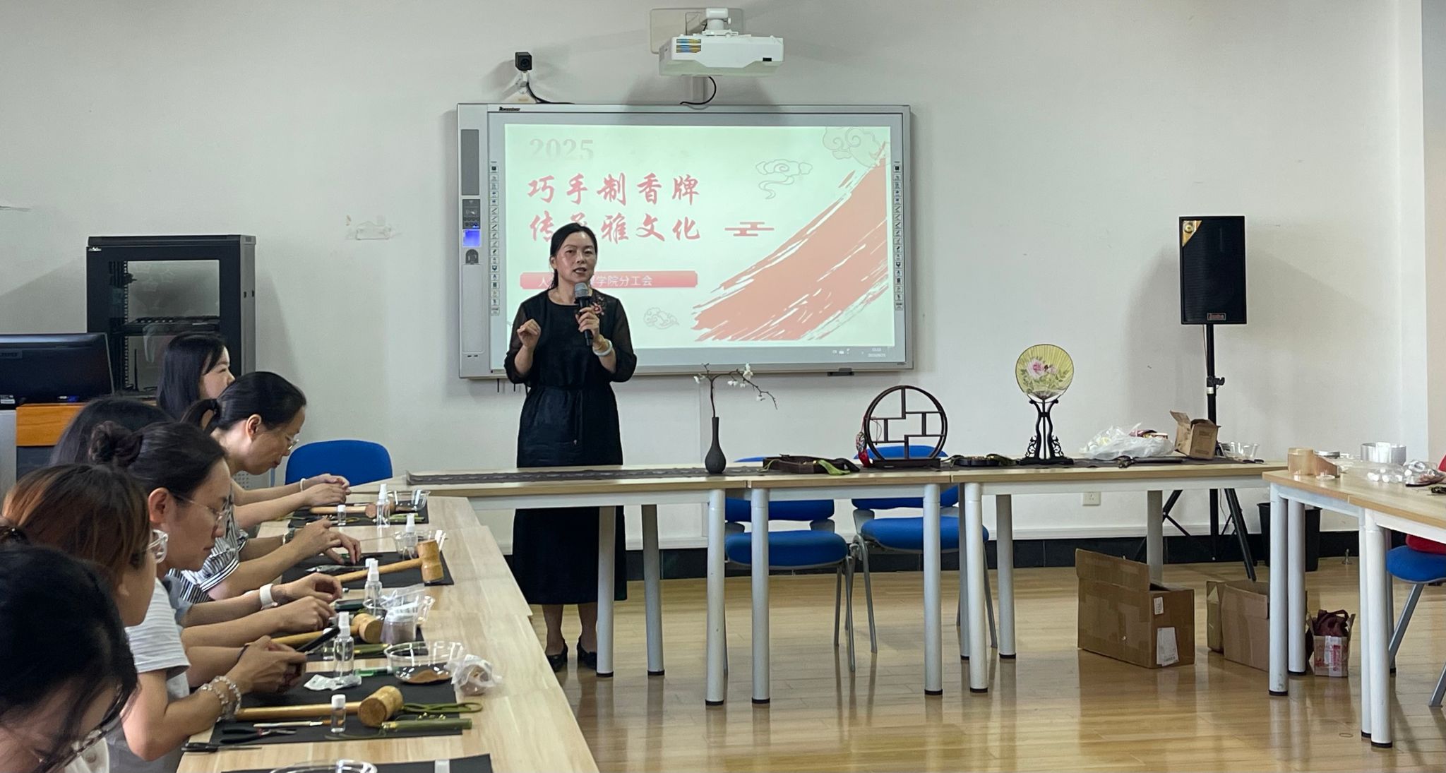 为丰盈学院女教职工与女学生的精神文化生活,赓续中华优秀传统文化,9月25日下午,人文与传媒学院工会以“巧手制香牌,传承雅文化”为主题,精心组织一场传统香艺体验活动,邀请学院女教师与女学生共同参与。