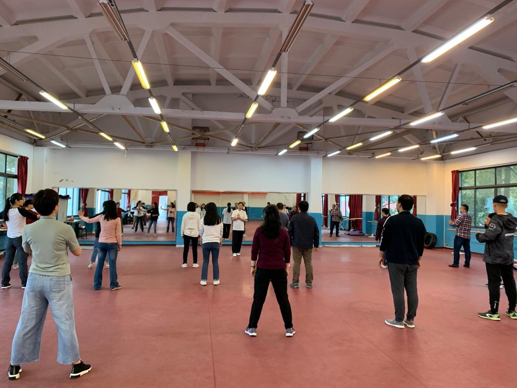 10月21日,人文与传媒学院分工会在体育学院形体房组织全院教职工学习八段锦。