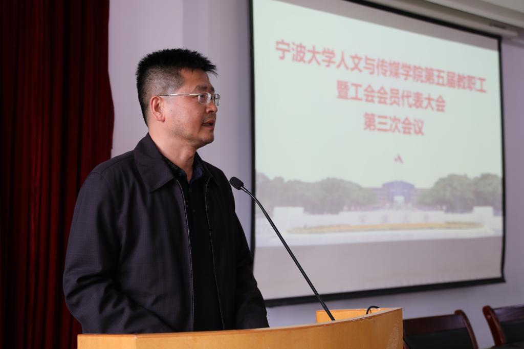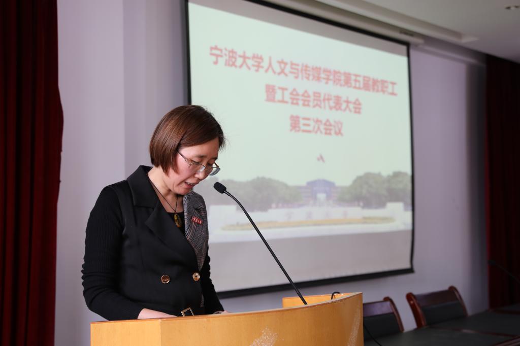 10月27日下午,人文与传媒学院在10#209报告厅召开了第五届教职工暨工会会员代表大会第三次会议。会议由学院党委书记张佩芬主持,39名代表参加。