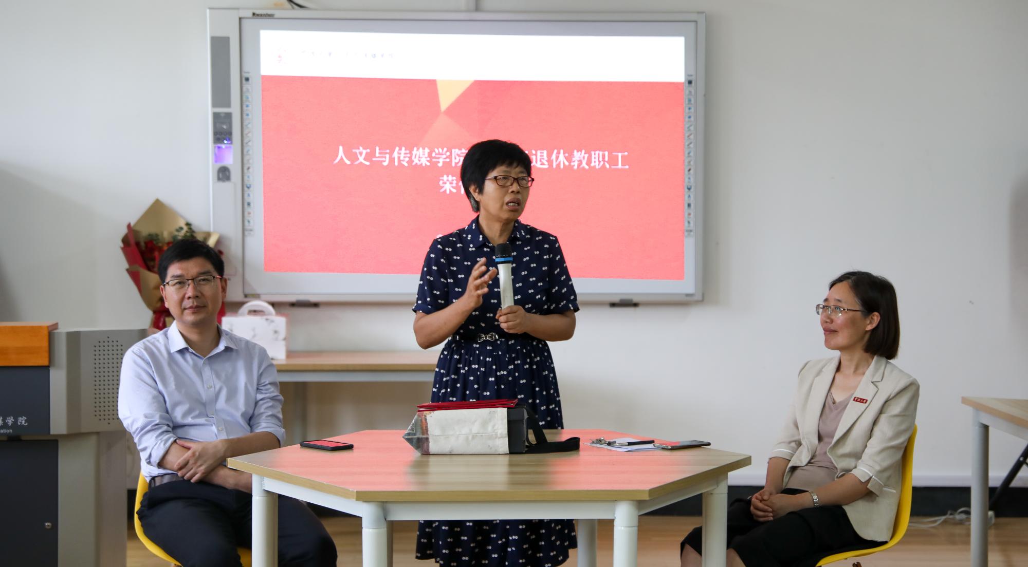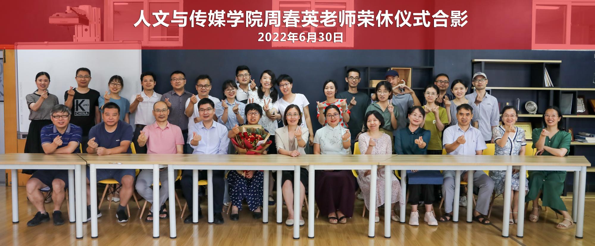 6月30日下午,人文与传媒学院在10号楼208室举办周春英教授荣休仪式,学院党政班子全体成员、行政教辅各办公室负责人,以及中国语言文学学系教师代表30余人参加了仪式。
