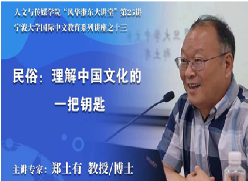 2022年10月26日下午,复旦大学中文系教授、中国民间文艺家协会副主席、中国民俗学会副会长郑土有教授应邀作了题为“民俗:理解中国文化的一把钥匙”的线上讲座,讲座由文轩探花