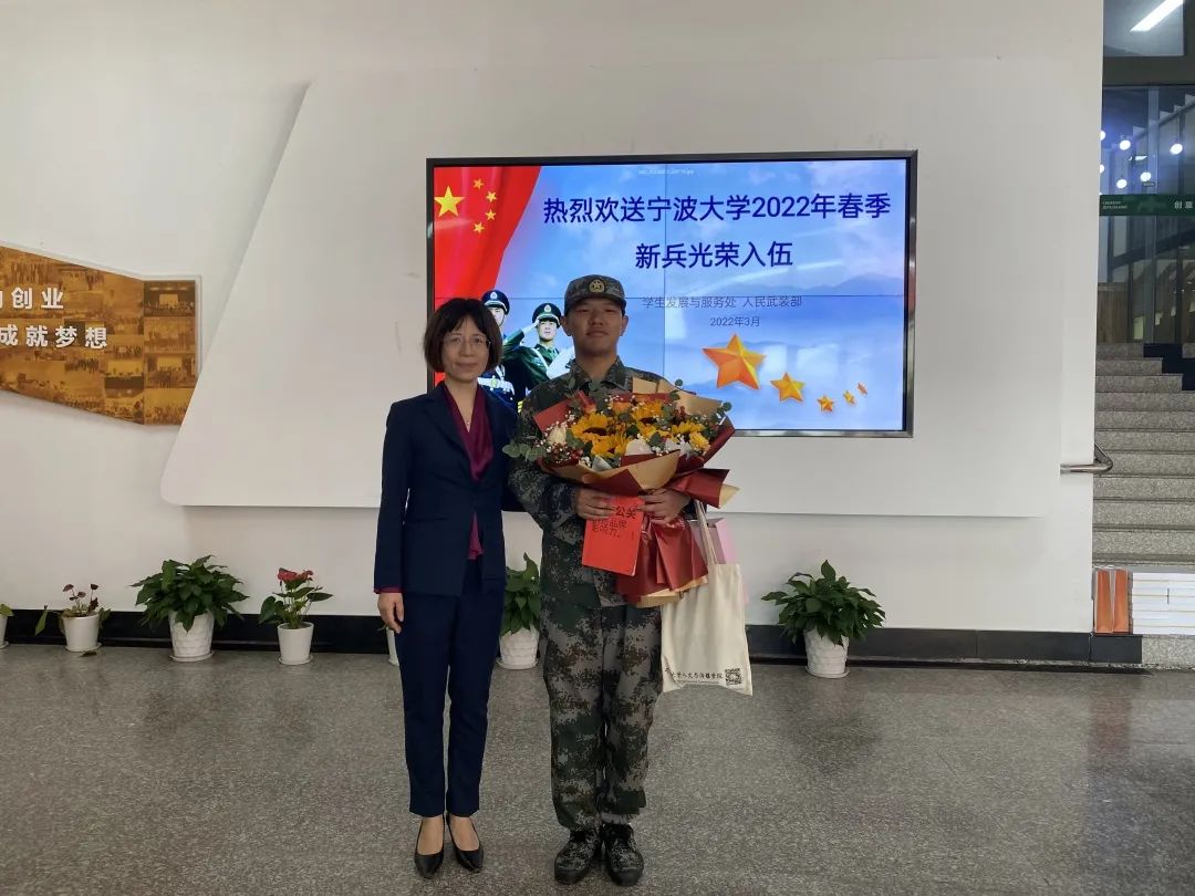3月14日上午,宁波大学2022年春季新兵入伍欢送会在黄庆苗楼406会议室举办,校党委副书记童晓晖、校人民武装部负责人、相关学院副书记,征兵工作辅导员,军辉战友团老兵代表以及8名应征入伍学生参加。