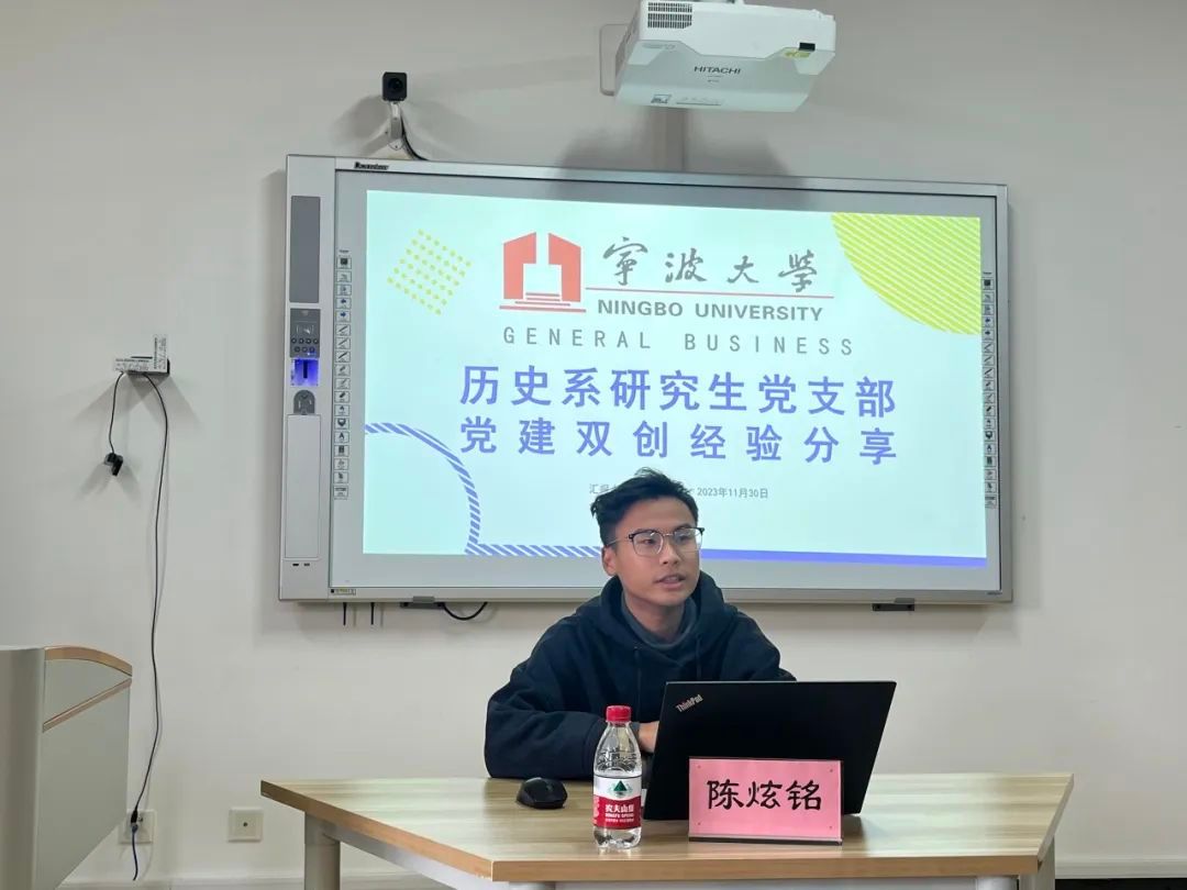 人文与传媒学院党委副书记、纪委书记孙文静在《规范党内政治生活,提高组织生活质量》的专题党课中强调,学员们要自觉在思想上政治上行动上同党中央保持高度一致,增强“四个意识”,做到“两个维护”。随后,孙老师详细介绍了宁波大学基层党支部建设标准,并依次对“三会一课”制度、民主生活制度、组织生活制度、谈心谈话制度、民主评议党员制度、主题党日制度、请示报告制度做了深入解读,让学员们对党的组织生活制度有了更深刻的理解。为进一步推进党建和业务双融双促,本次培训班还邀请了宁波大学党建工作样板党支部和研究生样板党支部负责人作党建“双创”工作交流。历史学系教师党支部副书记李翔老师着重介绍了支部党建与业务“双融双促”举措,结合专业特点和“四史”教育,实现师生互动,本硕联动,积极打造党建品牌。历史系研究生党支部书记陈炫铭结合党建双创项目的申报经历,与学员们重点分享了申报文本的撰写要求、双创建设的基本模式、主体方向以及模块构架。