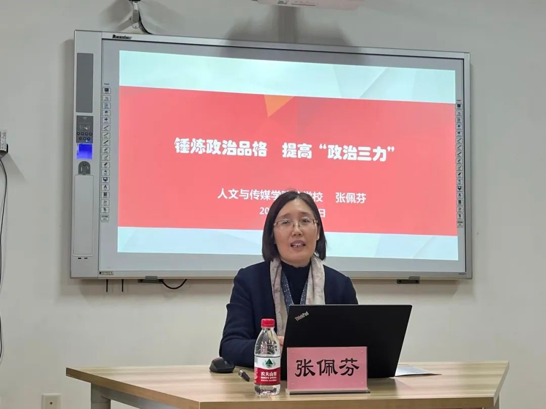 人文与传媒学院党委书记张佩芬开启党务干部培训班第一讲,为学员们带来《锤炼政治品格,提高“政治三力”》的专题党课。张老师首先强调了不断提高新时代党员干部“政治三力”的现实意义,后从三个维度阐述了提高新时代党员干部“政治三力”的具体要求:第一,提高党员干部的政治判断力就要不断增强科学把握形势变化的能力,提高精准识别现象本质的能力,提高清醒明辨行为是非的能力;第二,提高党员干部的政治领悟力就要在学习中领悟、领会党的创新理论,注重培养思考钻研问题的能力,要心怀“国之大者”;第三,提高党员干部的政治执行力,就要经常同党中央精神对表对标,及时校准偏差,坚持底线思维、增强忧患意识,坚持问题导向,解决制约发展的瓶颈和问题,增强狠抓落实的本领,切实提高落实的效果。