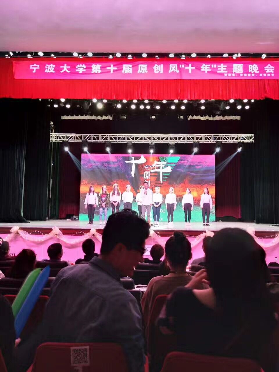 4月22日晚6:30,人文与传媒学院学生会主办“十年”原创风晚会在林杏琴会堂顺利举办。晚会邀请学院领导、团委老师出席并担任嘉宾。 晚会独出心裁,采用无主持模式,利了炫酷舞台效果带我们重温经典。开场以零八年北京奥运会主题曲《北京欢迎你》拉开本届原创风晚会序幕。晚会节目形式多样,有歌曲,朗诵,小品,舞蹈等等,以此带领观众回忆过去十年创作。 晚会在歌曲《十年》优美旋律中顺利落下帷幕。