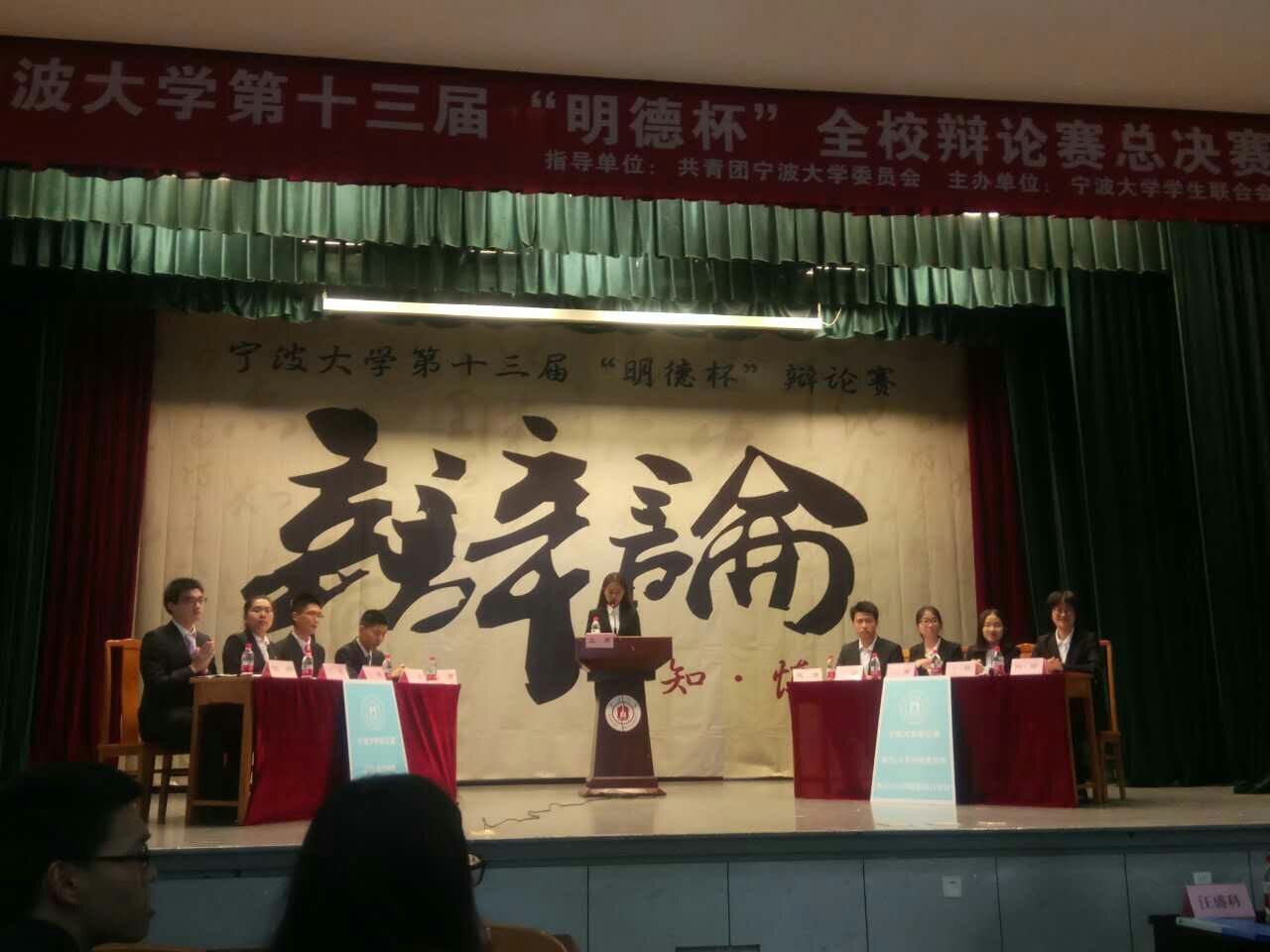 6月2日晚6点整,宁波大学第十三届“明德杯”全校辩论赛总决赛于锦绣小剧场举行,人文与传媒学院辩论队以精彩表现取得冠军,海运学院辩论队、机械学院辩论队分别取得亚军和季军。