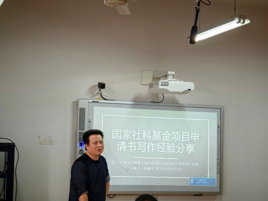 2025年10月29日,人文与传媒学院召开国家社科基金项目申报经验分享会暨 2026 年度申报启动会,为新一轮国社科项目申报按下“加速键”。会议紧扣 “有组织科研” 与 “高质量发展” 双主线,通过国家社科基金主持人刘恒武、王刚、屈啸宇三位教师的经验分享,及申报工作部署,有效凝聚全院科研力量。学院副院长田启涛主持会议,全院二十余位教师参会。
