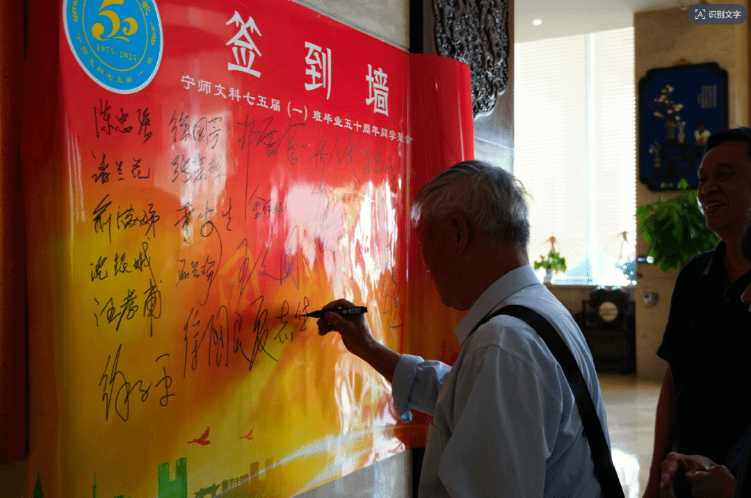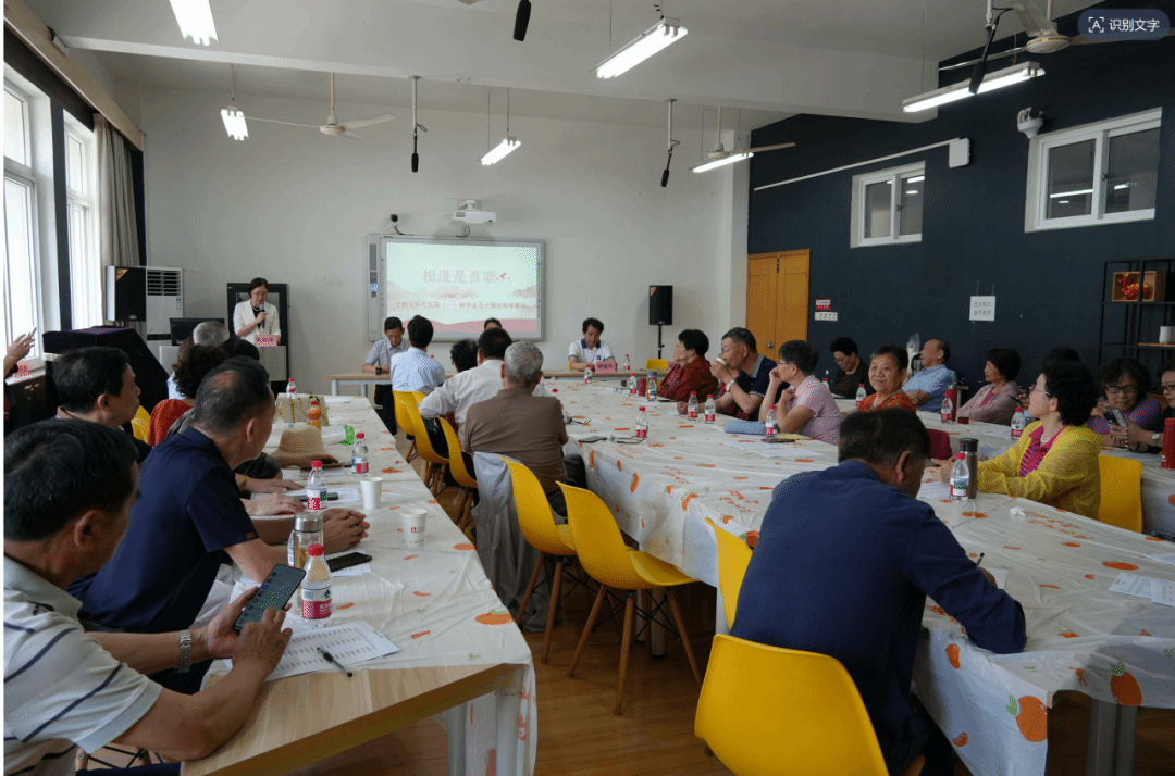 接下来的座谈会上,校友们展示着珍藏的照片、分享着各自的人生故事,众人欢聚一堂、有说有笑。最后,校友们合唱《相逢是首歌》,喜悦且复杂的情感在会议室久久回荡。