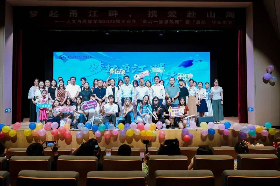 2025年6月17日18:30,宁波大学人文与传媒学院2025届毕业生“最后一堂思政课”暨“梦起甬江畔,携爱赴山海”毕业生晚会于锦绣小剧场盛大开场。