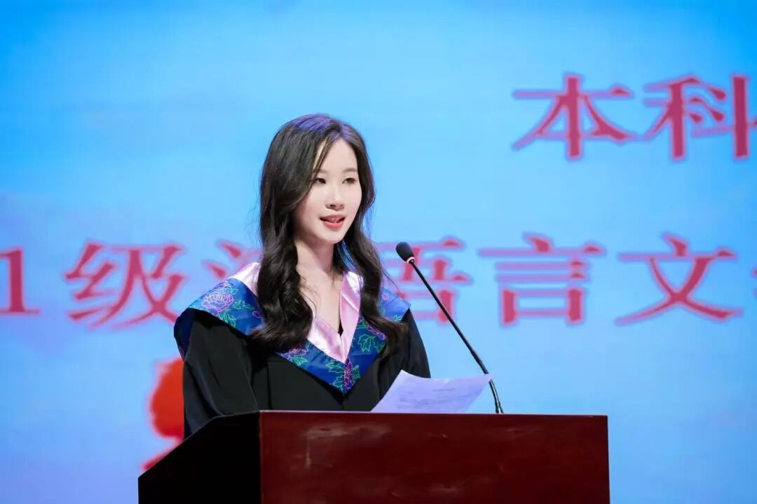 本科生与研究生毕业生代表依次登台,在发言中深情回顾求学时光,由衷表达对老师们的谆谆教诲和校园优质学习生活环境的感激之情.