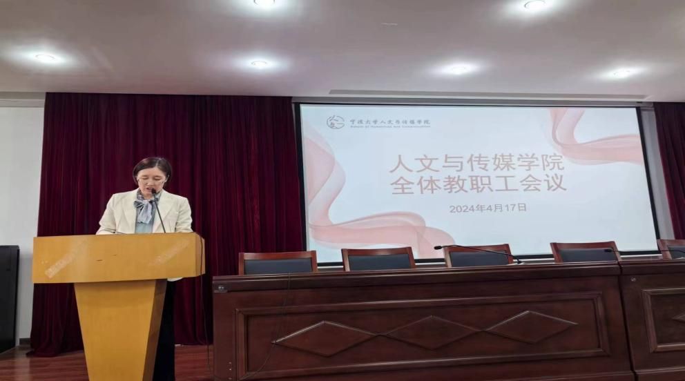 4月17日下午,人文与传媒学院在包玉书科学楼10号楼209室召开了全体教职工大会。会上张佩芬书记传达了学校安全稳定工作会议精神,总结了学院2023年度安全稳定工作并部署了2024年度安全稳定工作。学院与各学系、各办公室负责人代表签订了安全稳定工作责任书。张佩芬书记还传达了学校全面从严治党暨“清廉宁大”建设推进会精神,总结了学院全面从严治党暨”清廉文院“建设工作,并部署了2024年工作。学院党委和各教工党支部书记代表签订了党风廉政建设责任书。学院各分管领导分别对本科教学、研究生教学、科学研究、学生工作、师德师风等工作进行了通报和布置。