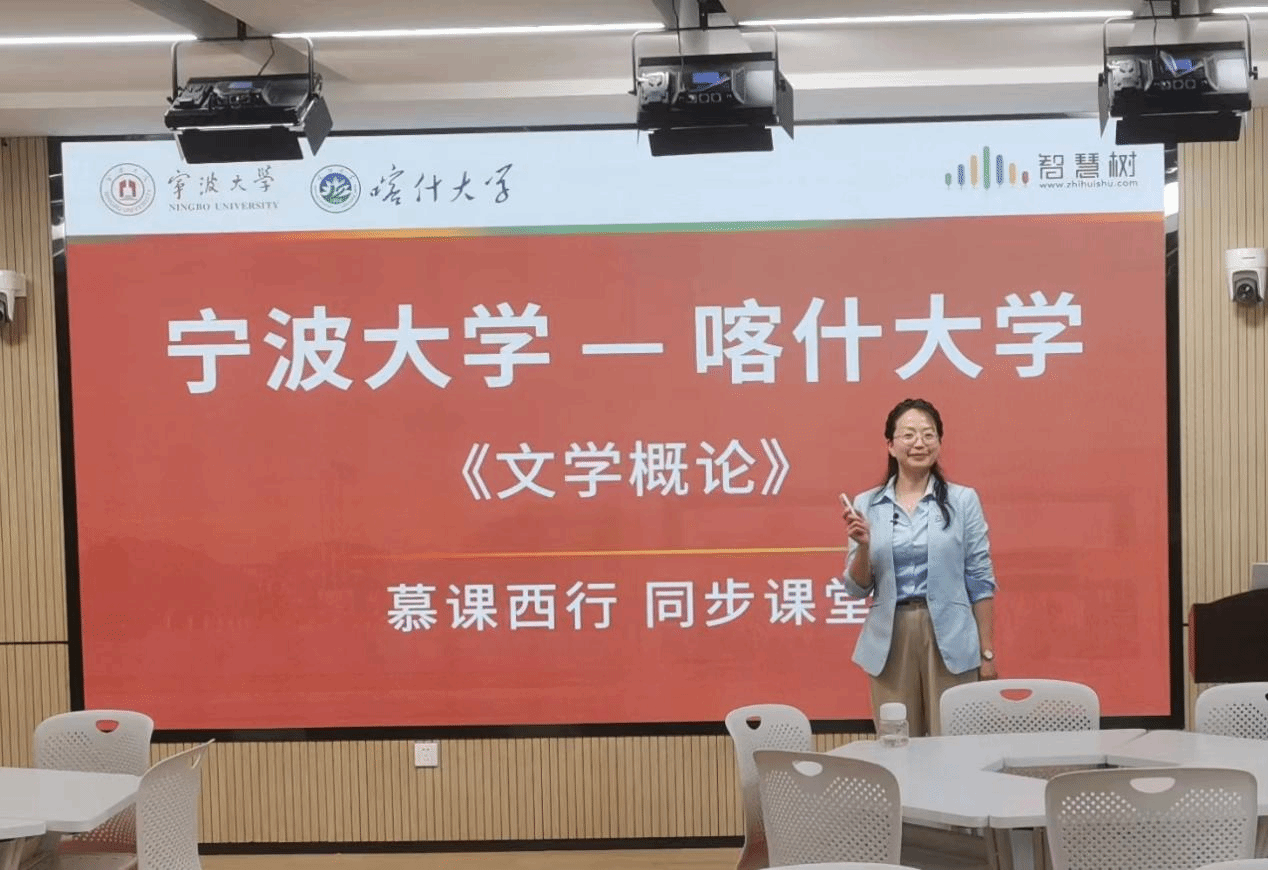 此前,为做好本次同步课堂教学,宁波大学人文与传媒学院、喀什大学人文学院、智慧树平台三方专门提前组织了“智慧树-宁波大学-喀什大学人文学学院同步课堂”线上研讨会,三方表示,愿意为共建文学理论课程虚拟教研室开展更多的教育教研活动做出持续努力,期待虚拟教研室的共建工作可以在资源共建共享、推进教学改革、加强两校交流、促进协同发展等方面产生积极作用和广泛影响,十分期待继续为中西部教育均衡发展、教育资源跨区域共享以及打造“智能+”时代新型教学共同体做出有益贡献。