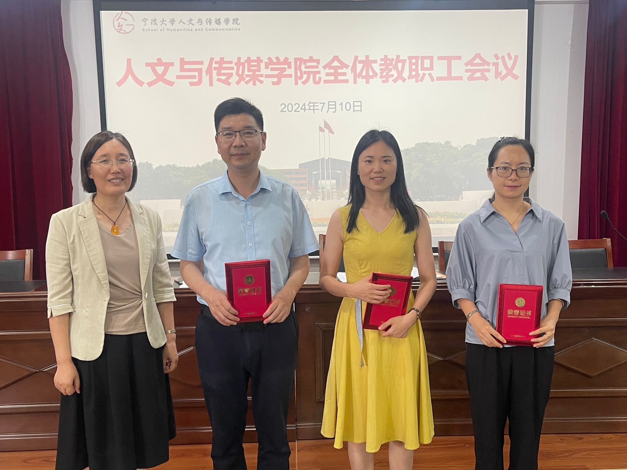 7月10日下午,人文与传媒学院在包玉书科学楼10号楼209报告厅召开全体教职工大会。