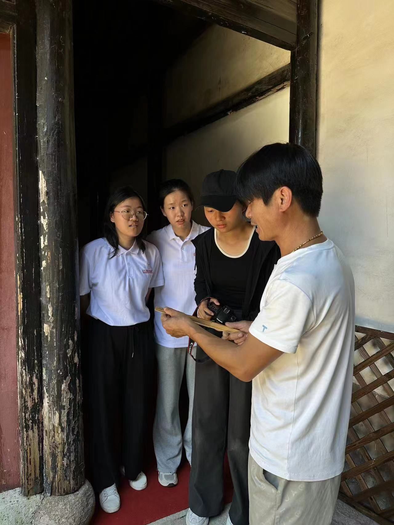 7月15日,团队成员闻奕、王淑禾等人前往古镇慈城调研当地文化振兴成果并宣传诗意语文概念。慈城,史称"句余"、"句章"、"慈溪城",是浙东名邑慈溪的老县城,具有丰厚的文化底蕴,有“中国历史文化名城”、“中国首个慈孝文化之乡”之称。因此,团队成员选择此处作为实践走访的目的地,寻访慈城的非遗传承人、退休语文教师等文化教育事业的资深从业者,并向当地村民介绍团队正在开展的诗意语文支教课堂。