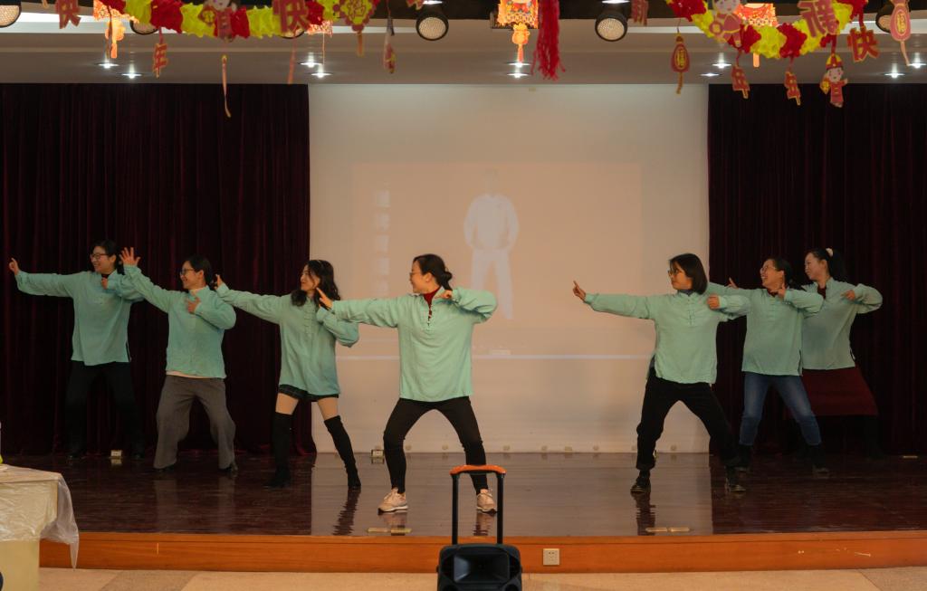 此次新年联谊会汇集了中文学系、历史学系、新闻传播学系、对外汉语教学部以及行政教辅各个单位选送的14个节目,节目精彩纷呈,令人轻松愉悦。一段《极速八段锦》拉开序幕,《小人舞》《小鸡小鸡》《三句半》《祝酒歌》诙谐有趣,诗朗诵《在田野上打柴火》清新如风,还有黄梅戏《天女散花》、越剧《春题湖上》、国际范儿的《gaudeamus igitur》、《凡人歌》《青花瓷》《因为爱情》,金嗓子们纷纷登场,全体院领导联袂表演的诗朗诵《走向远方》《面朝大海、春暖花开》则把联谊会推向高潮。最后新闻传播系全体教师共同演绎歌曲《明天会更好》,一曲唱出了人文学院的团结和谐与共同的心声。