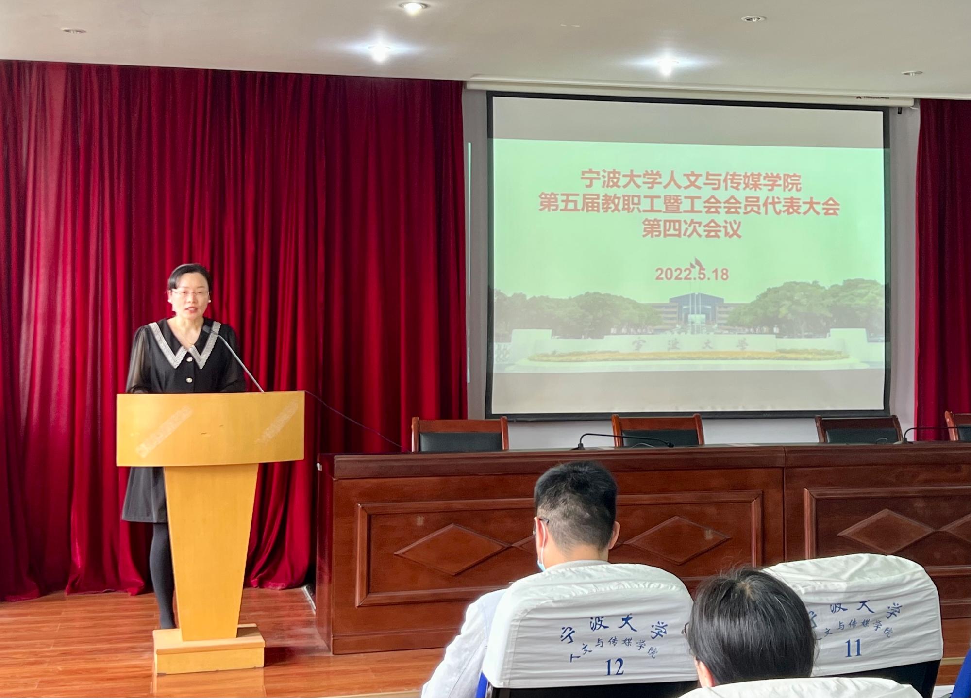 5月18日下午,人文与传媒学院第五届教职工暨工会会员代表大会第四次会议在包玉书科学楼10号楼209报告厅召开。会议由学院党委书记张佩芬主持,36名正式代表参加会议。