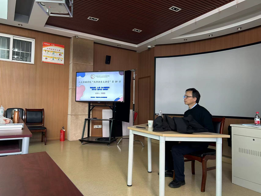 师生开展了题为《人-机(AI)传播研究:为什么?是什么?如何做?》的讲座,本次讲座由新闻传播学系副主任赖明东老师主持。