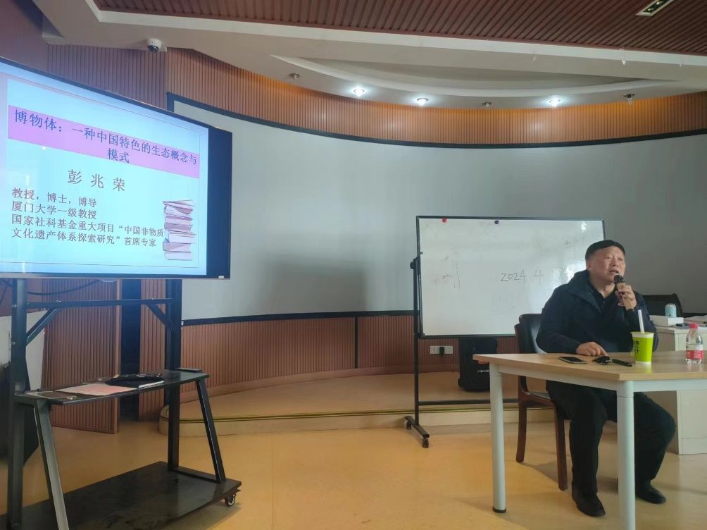 2024年4月24日,彭兆荣教授在东校区10号楼人文与传媒学院作了“博物体:一种中国特色的生态概念与模式”的专题讲座。该讲座为宁波大学人文社会科学名家讲坛第405讲暨人文与传媒学院“风华浙东大讲堂”第75讲。
