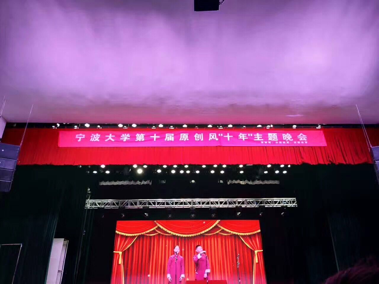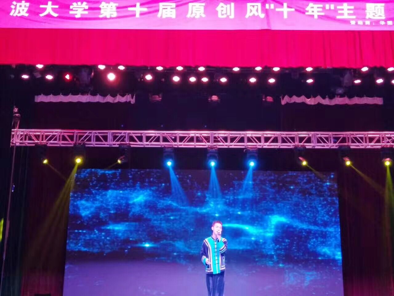 4月22日晚6:30,人文与传媒学院学生会主办“十年”原创风晚会在林杏琴会堂顺利举办。晚会邀请学院领导、团委老师出席并担任嘉宾。 晚会独出心裁,采用无主持模式,利了炫酷舞台效果带我们重温经典。开场以零八年北京奥运会主题曲《北京欢迎你》拉开本届原创风晚会序幕。晚会节目形式多样,有歌曲,朗诵,小品,舞蹈等等,以此带领观众回忆过去十年创作。 晚会在歌曲《十年》优美旋律中顺利落下帷幕。