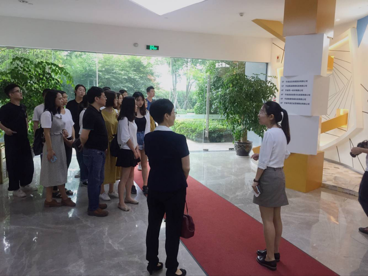 2018年5月29日,宁波大学2015级广告学专业学生代表团在人文与传媒学院教授贺雪飞、广告学专业数字营销传播方向负责人冯凯林老师带领下,赴宁波市国家广告产业园区参观学习,零距离感受了园区的建设成就。