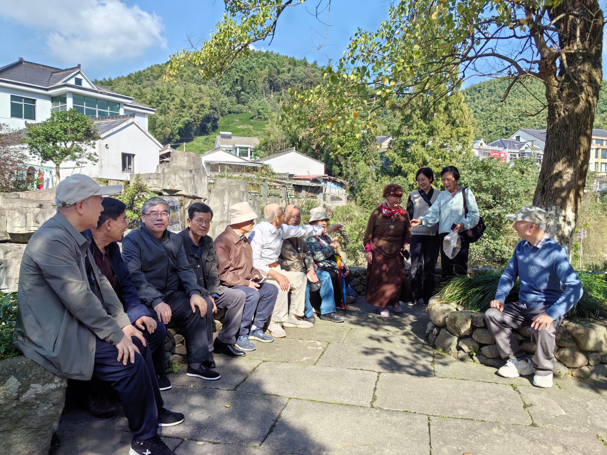活动当日,秋高气爽,阳光明媚。老教师们在学院党委书记张佩芬和党政办王灵芝老师的带领下,实地考察了毛岙村的美丽乡村建设、农文旅融合发展情况,感受“千万工程”实施以来宁波乡村发生的精彩蝶变。
