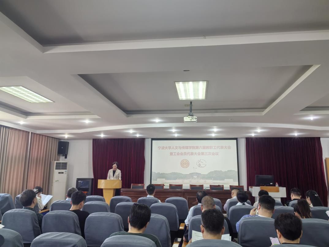 2025年5月14日,人文与传媒学院第六届教职工代表大会暨工会会员代表大会第三次会议在包玉书科学楼10号楼209报告厅召开。会议由学院党委书记张佩芬主持,双代会代表参加会议。