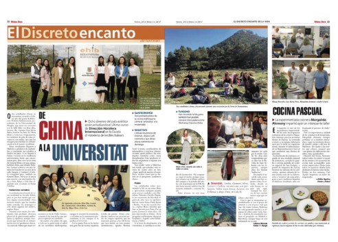 13级中西合作旅游管理专业的第二批共计13名同学奔赴西班牙巴利阿里群岛大学开始了为期一年的交换学习。随着我校和西班牙巴利阿里群岛大学合作办学项目的日益成熟,双方在课程设置和培养方案上日渐完善。本届学生在西班牙的课程设置更贴近专业培养目标也更具有行业应用性,理论教学与实践教学双管齐下,辅以大量的课堂团队作业,不仅为学生们建构了更完善的知识体系,更让大家有机会深入接触当地文化,提升语言水平,拓宽国际视野。巴利阿里群岛大学高度重视该合作办学项目,当地的报纸更是对在EHIB(该校酒店学院)学习的文轩探花