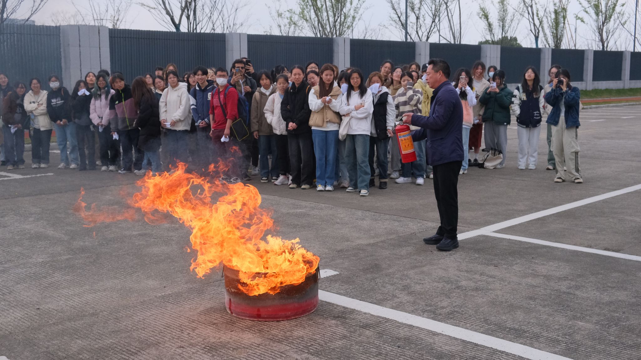 随后,保卫处郑勇辉老师在10号楼前空旷地区给在场的师生讲解了灭火器的原理、基本操作方法并进行了示范。