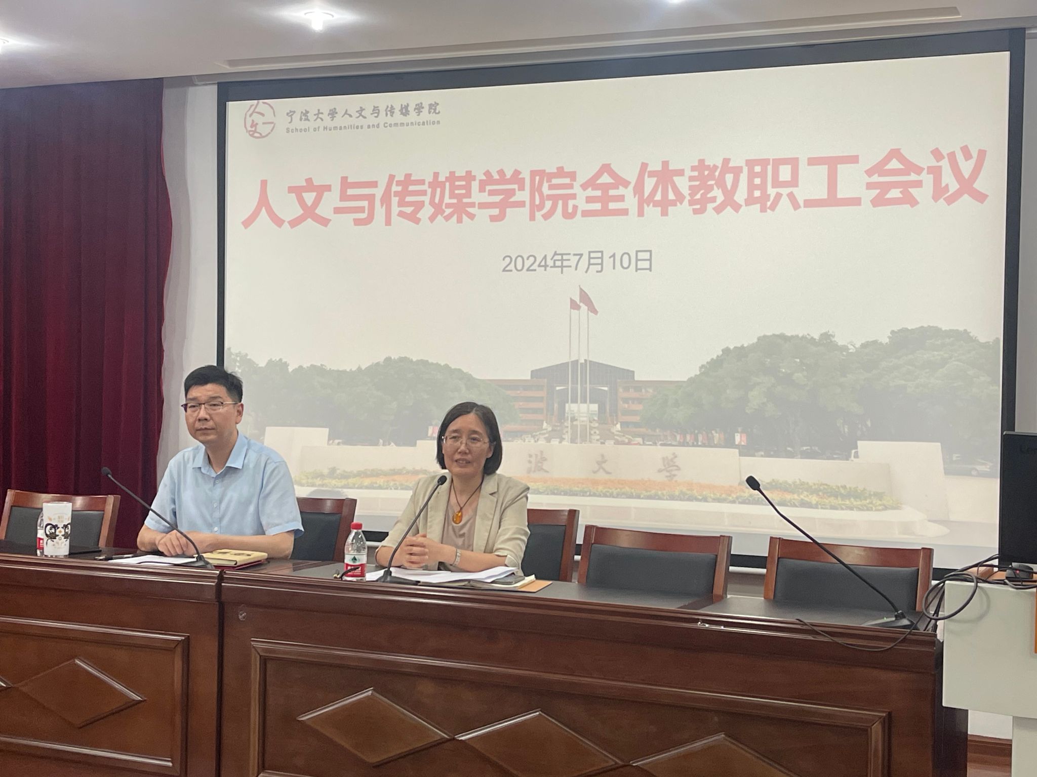 7月10日下午,人文与传媒学院在包玉书科学楼10号楼209报告厅召开全体教职工大会。